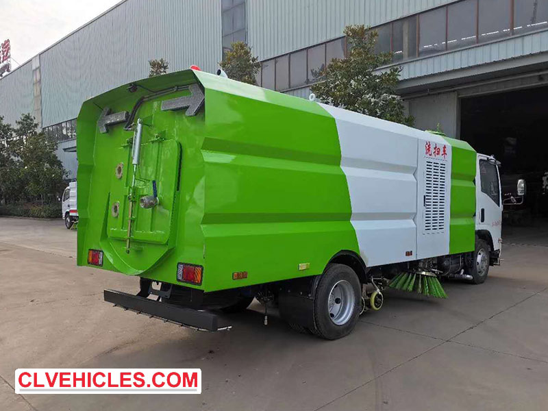 ISUZU Road Sweeper Truck combines a 5000L water tank for dust control and a 5000L garbage tank for waste collection, ensuring thorough and efficient street cleaning.